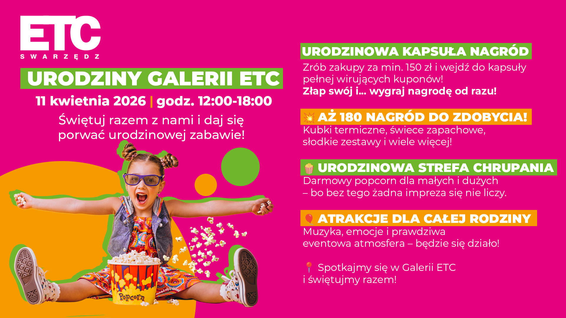 ETC Swarzędz zaprasza na 32. urodziny. W programie widowiskowa kapsuła nagród i atrakcje dla całych rodzin