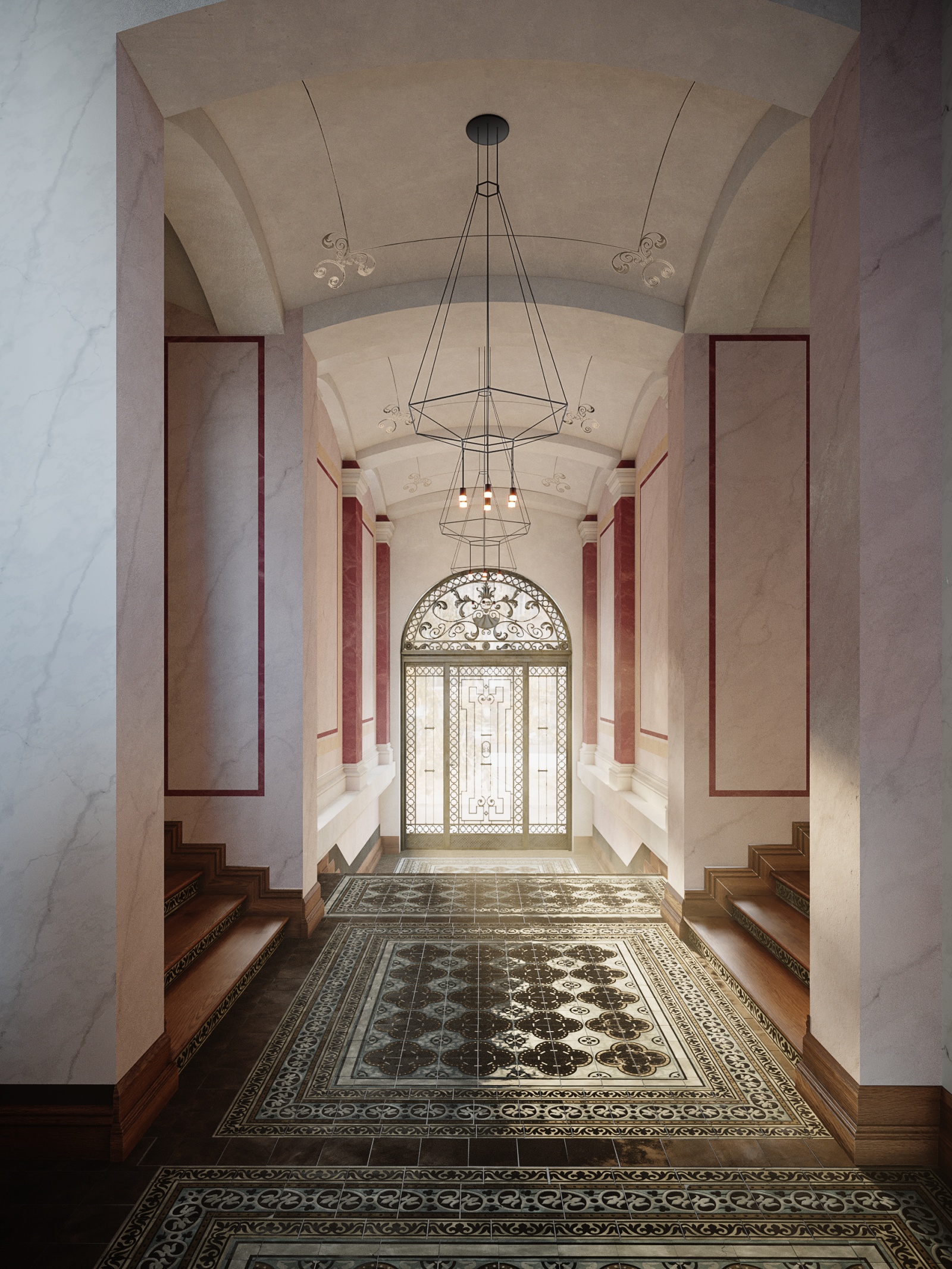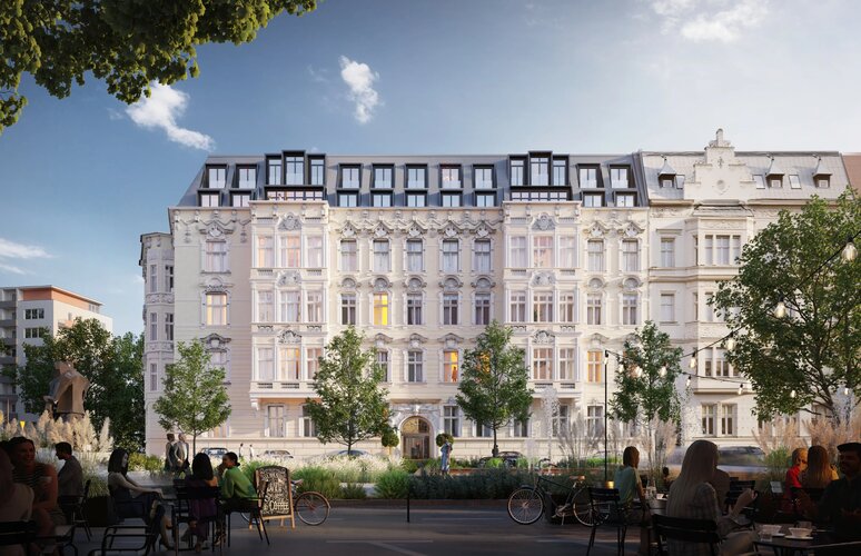 The investment project on Aleja Jana Pawła II in Szczecin involves the comprehensive revitalisation and modernisation of a three-winged, neo-Baroque building. The project will preserve the building's historical character, including the richly decorated façade and grand staircases. Concurrently, the building will undergo adaptations to meet current housing standards.