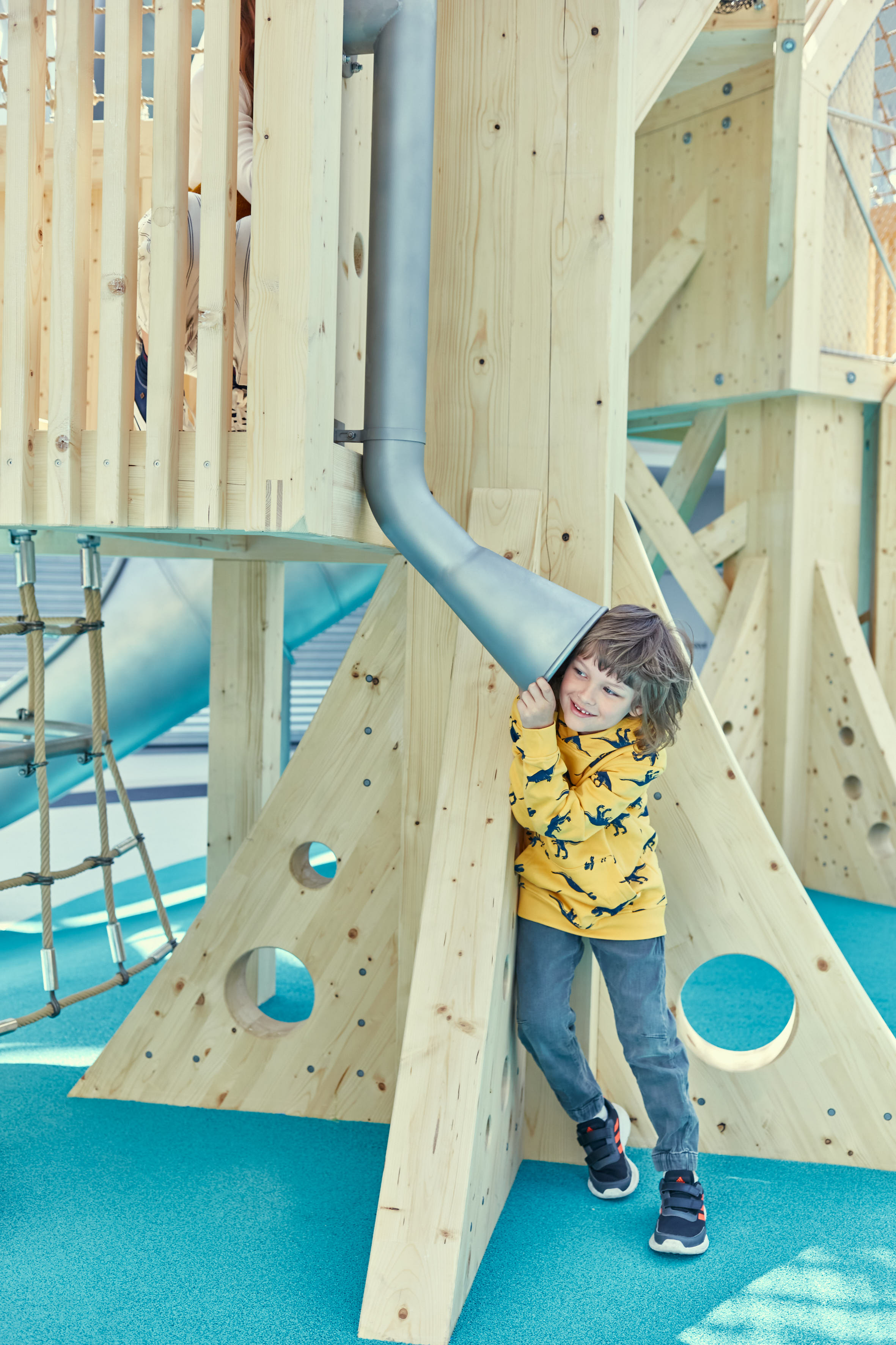 Przedszkolaki z pewnością ucieszą się z miejsc do zabaw tematycznych, mostów, małych tuneli i przestrzeni do odkrywania. Na starsze dzieci czekają przejścia z linami, siatki, wyższe poziomy domków, wymagające elementy ruchowe, a także przestrzeń do obserwacji i spędzanie czasu z rówieśnikami.