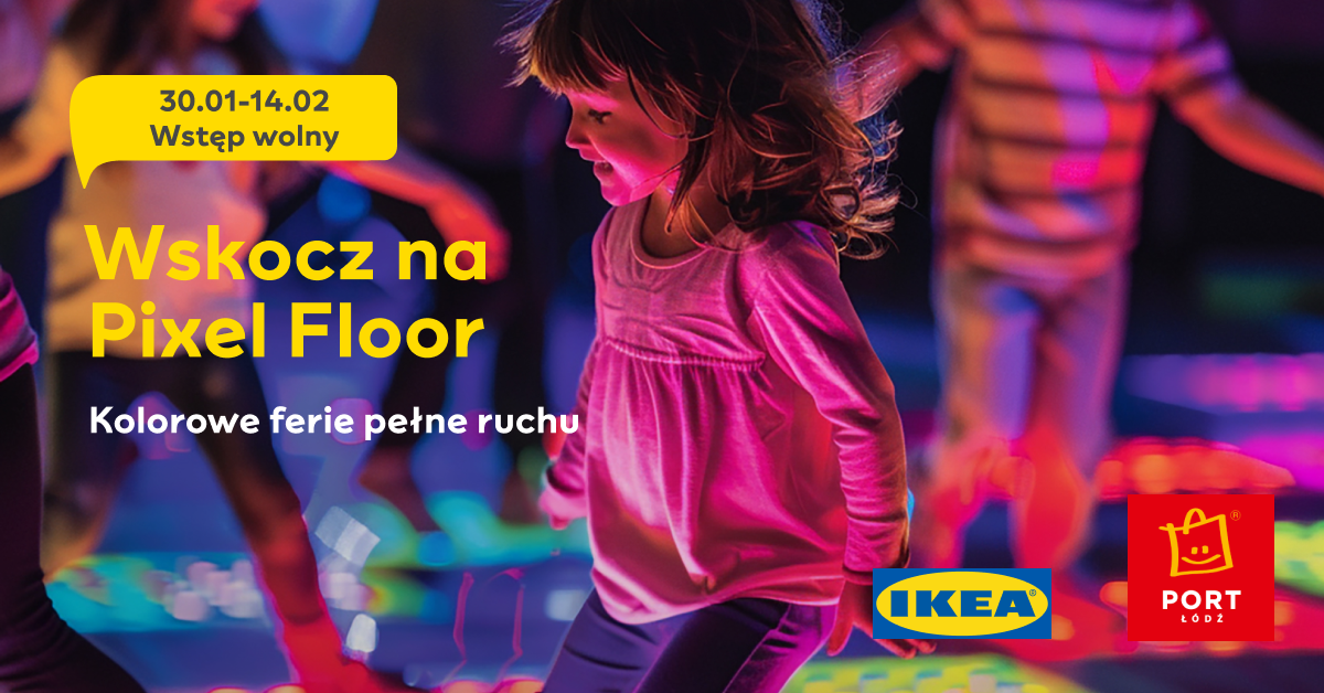 Interaktywna przestrzeń w Porcie Łódź pojawi się w Atrium (obok IKEA) i dostępna będzie dla wszystkich bezpłatnie już od najbliższego piątku 30 stycznia w godzinach 16:00 – 20:00, a w czasie pełnoprawnych ferii zimowych 31 stycznia – 14 lutego w godzinach 12:00 – 20:00. Pixel Floor to ponad 50 m² reagującej na ruch powierzchni, wypełnionej dynamicznymi animacjami i efektami świetlnymi. Każdy krok uruchamia nowy element gry, dzięki czemu uczestnicy przenoszą się do świata znanego z gier komputerowych – jednak tym razem w realnej, wspólnej przestrzeni. Zabawa angażuje ciało, ćwiczy refleks i zachęca do ruchu, a jednocześnie pozostaje intuicyjna i dostępna dla wszystkich grup wiekowych.