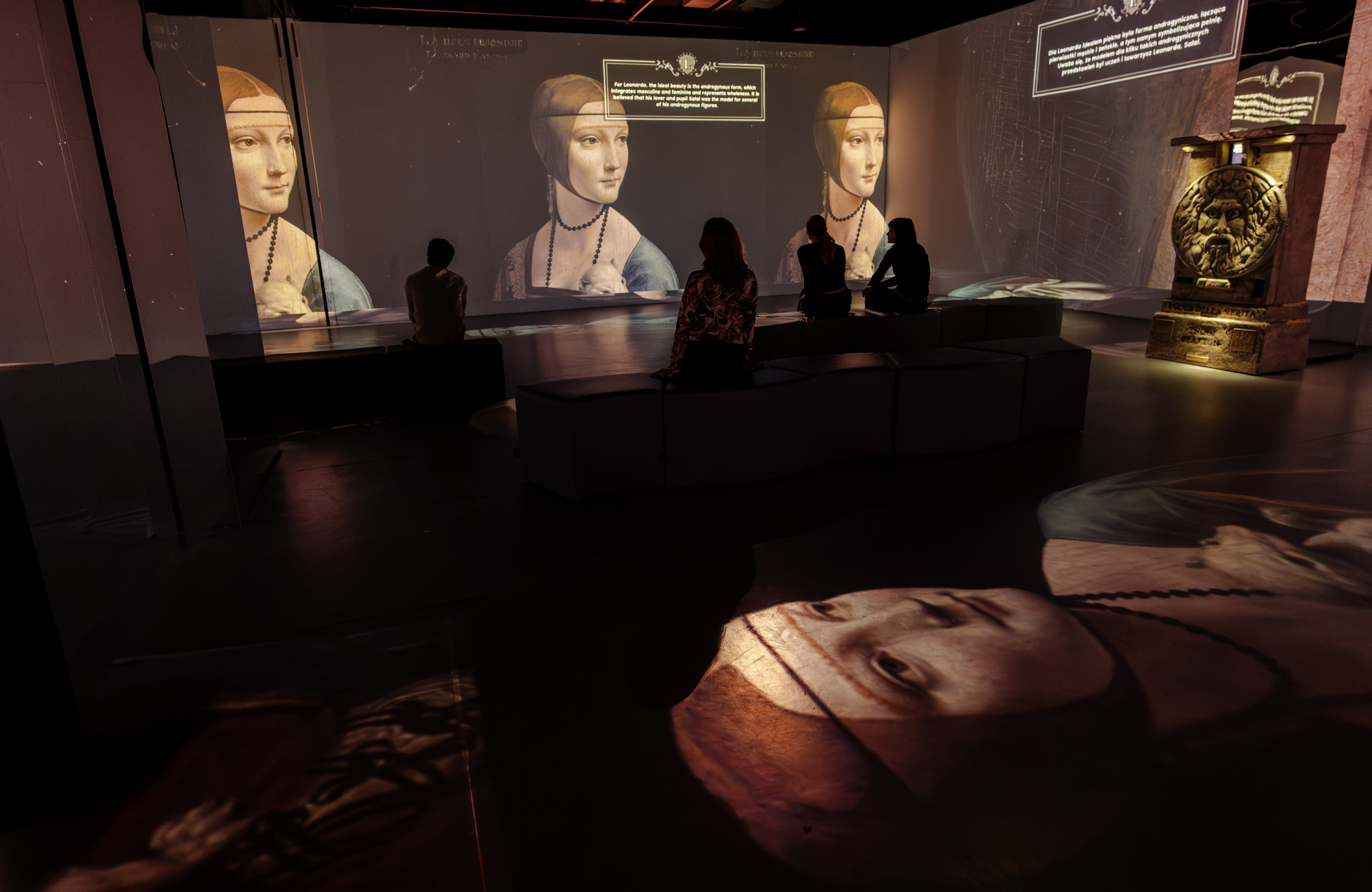 Na przestrzeni ośmiu sal o łącznej powierzchni 800 m² widzowie zanurzają się w świecie renesansu poprzez monumentalne projekcje 2D i 3D, filmy immersyjne, instalacje interaktywne oraz doświadczenie wirtualnej rzeczywistości 360°.